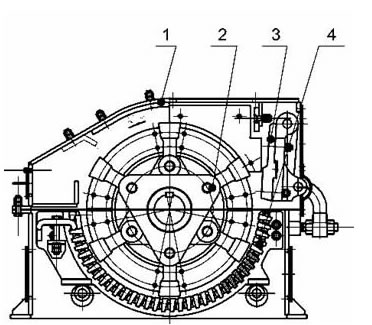 Состоит из рамы, ротора, колосника и молотка. Роторы ведет непосредственно двигатель через упругую муфту, и материалы дробятся на дробящей плите под воздействием головки молота.